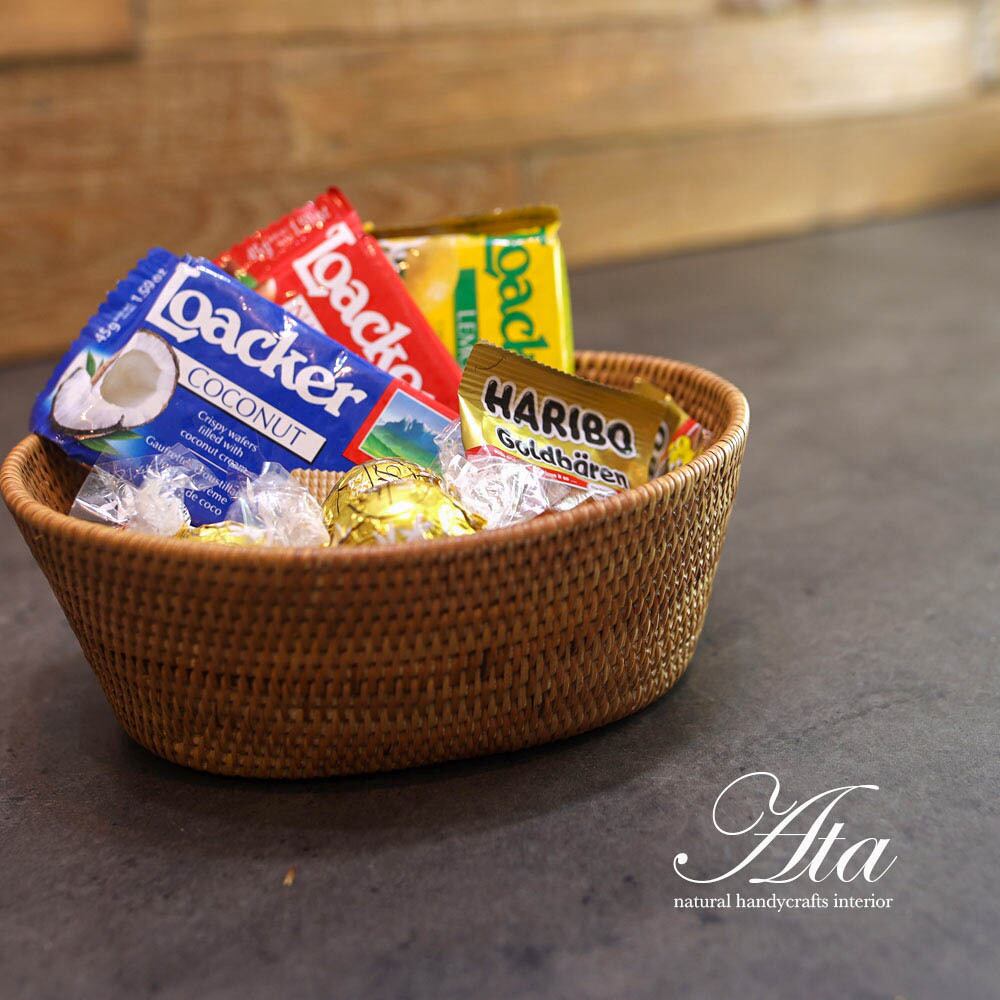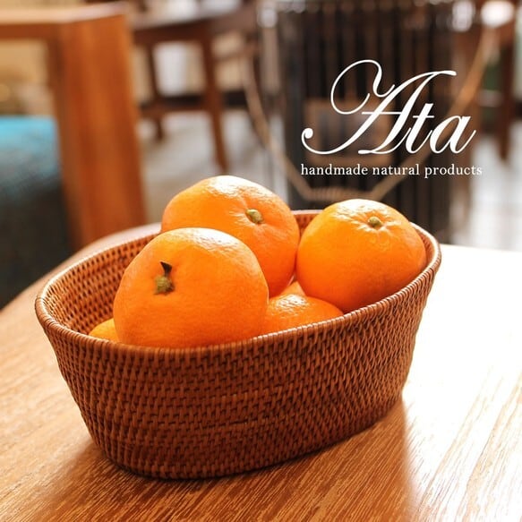 アタ製丸っこい形がほっこりするアタ丸箱 A42(手編みかご、みかんかご、小物入れ、果物かご)
