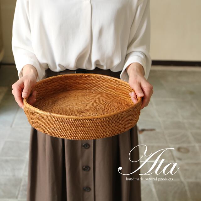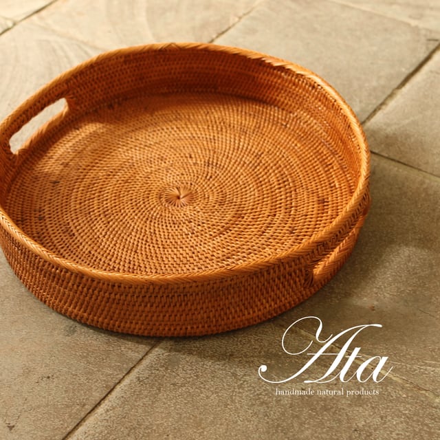 アタ製 持ち手付丸盆 A47 (収納 お菓子入れ 来客用 整頓)