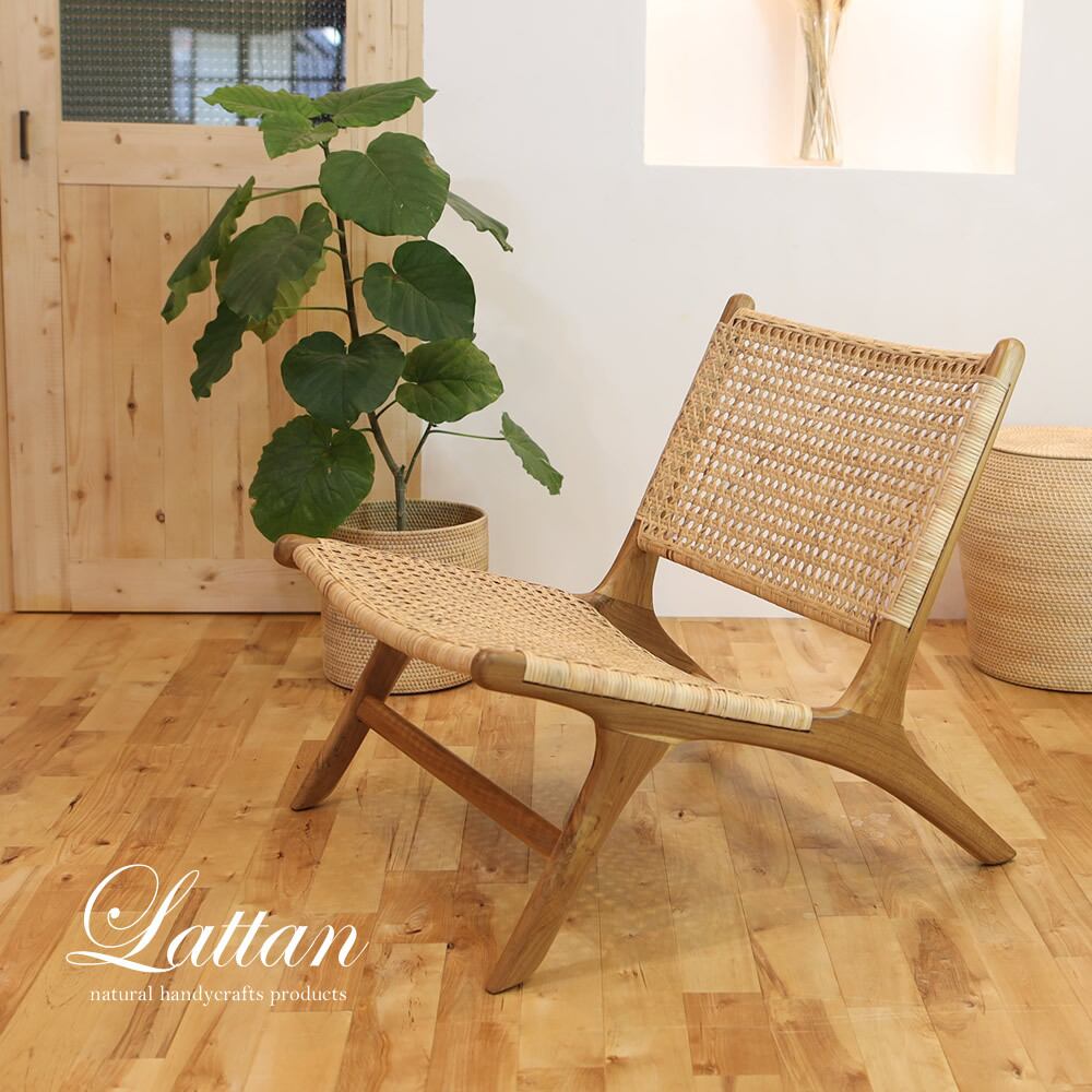『ラタン素材とチーク無垢材がミックスされた可愛いローチェア』になります。